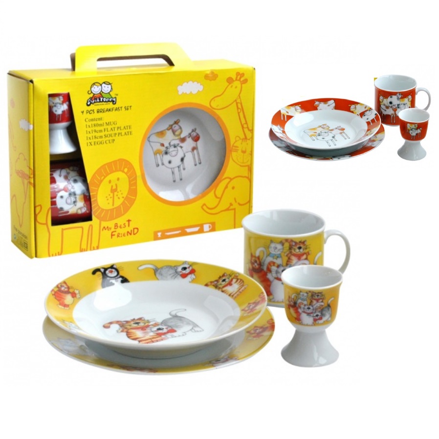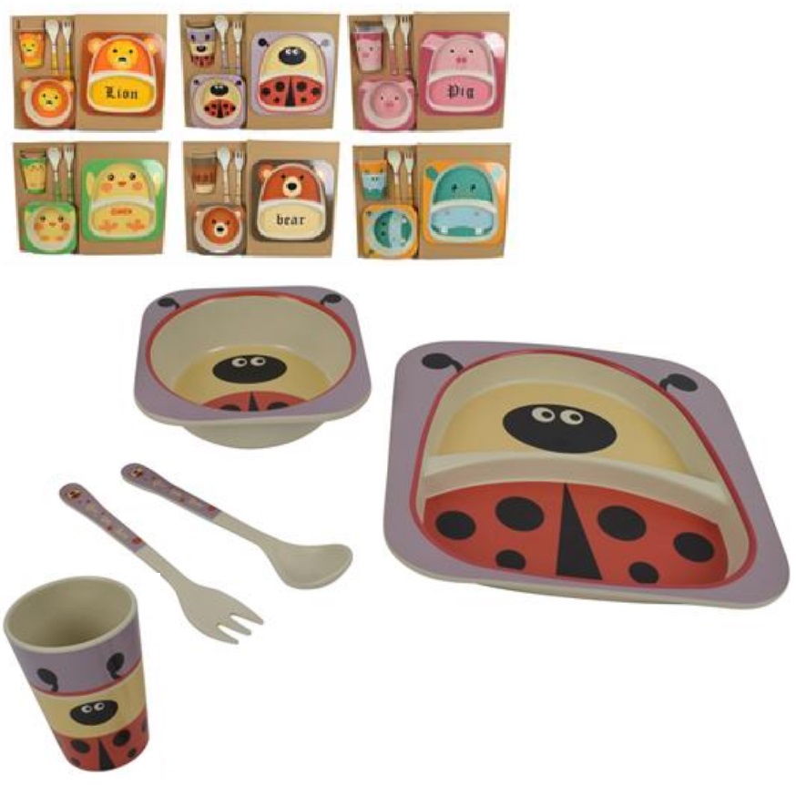 Obedové detské súpravy väčšinou obsahujú tanierik alebo hlbokú misku, plytký tanierik, pohárik.