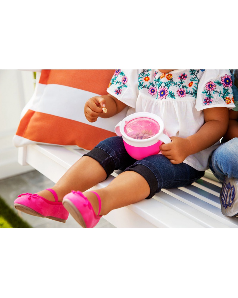 A v čom dávať dieťatku napríklad mašrtku, chrumku, piškótku, doma, super v aute je miska s dvoma ušami, ktorá má vo víčku otvor a dieťatko s malou rúčkou si vyyberá maškrtku, bez toho aby narosípal všade okolo. Vyberie len jednu chrumku spapá a potom sa zaoberá vyťahovaním druhej.