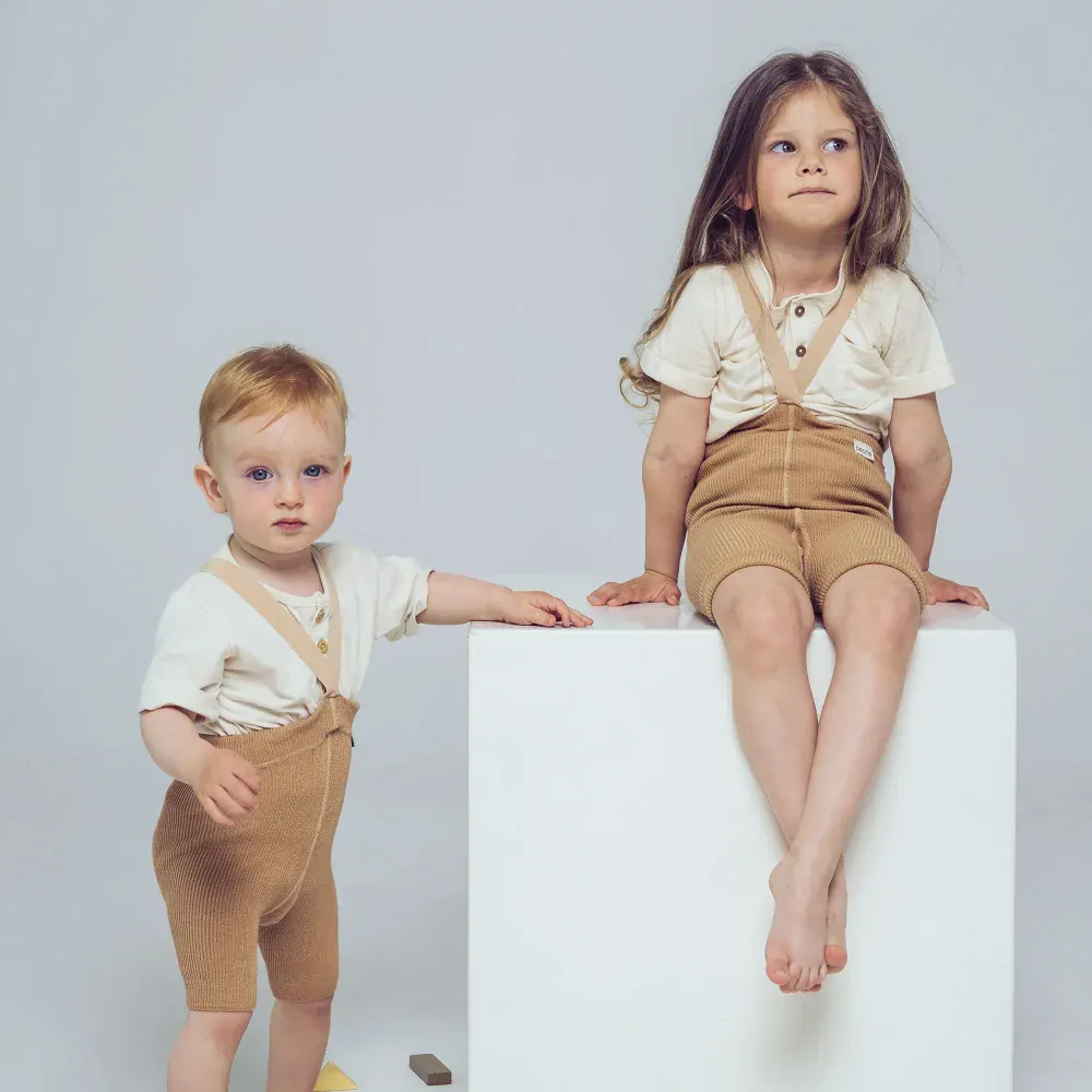 Detské kraťasy na traky béžovéSkladom11,20 €/ ks9,11 € bez DPH