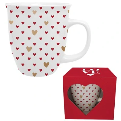 šálka, vhodná na valentína, so srdiečkami, darčekovo balená 650 ml