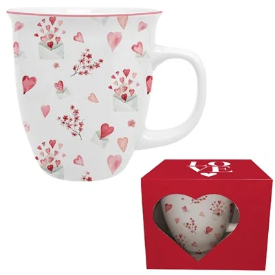 šálka, vhodná na valentína, so srdiečkami, darčekovo balená 650 ml