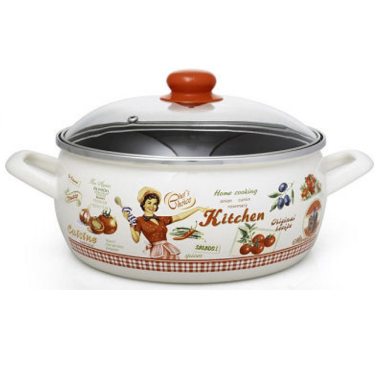 Kvalitný Smaltovaný hrniec od srbskej značky Metalac. Nápaditý a výrazný svojím dekórom Retro Amerika. farba: krémová s motívom RETRO KITCHEN / tmavé sivé vnútro