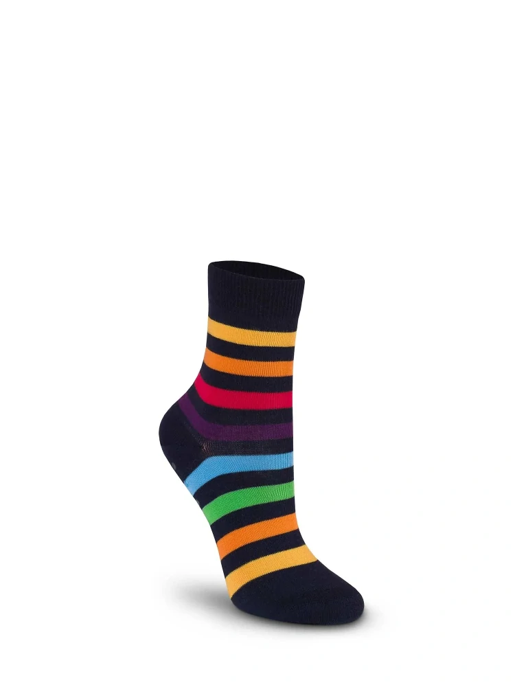 Farebné - hravé také sú obľúbené pruhované ponožky pre deti, vhodné do školy a školy alebo počas voľných chvíľ. Ponožky ani gumička vôbec netlačia, ani po celodennom nosení.
